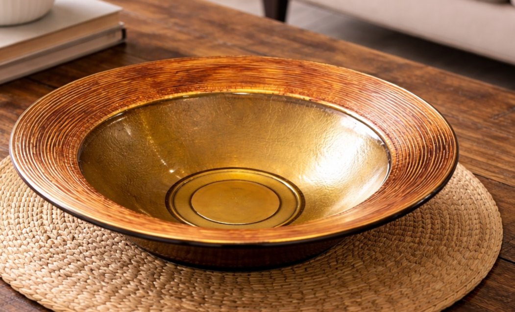Gold & Amber Glass Decorative Bowl – Large Centerpiece