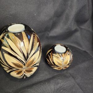 Black & Gold Glitter Floral Candle Holder Set – Large Vase + Small Tealight – Stunning Pair